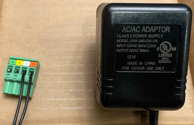 You will need a 120vac to 24vac transformer, and 1 green ABCD plug.